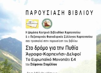 Σήμερα η παρουσίαση του βιβλίου του Στέφανου Σταμέλλου "Στο Δρόμο για την Πυθία: Άγραφα - Καρπενήσι - Δελφοί, το Ευρωπαϊκό Μονοπάτι Ε4" από...
