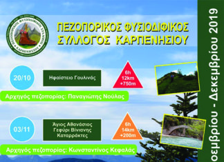 Το φθινοπωρινό πρόγραμμα του Πεζοπορικού , Φυσιοδιφικού Συλλόγου Καρπενησίου