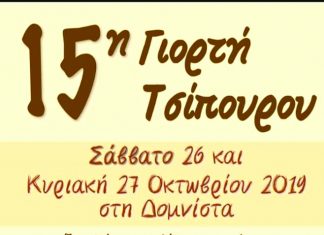 Σάββατο 26 – Κυριακή 27/10/2019 Δομνίστα 15η Γιορτή Τσίπουρου. Ένα...