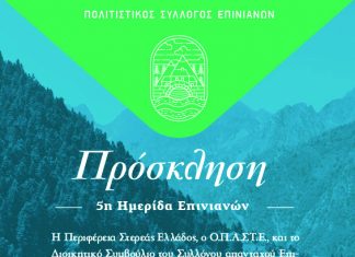 Τρίτη 6/8/2019 Επινιανά (Ι.Μ. Παναγιάς Στάνας) Εκδήλωση: ‘Οι σχολές των Αγράφων κατά την Τουρκοκρατία’....