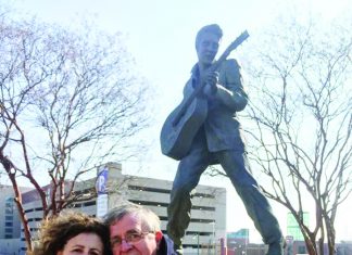 Ένα ζευγάρι, δύο απόδημοι Ευρυτάνες, βρίσκονται στη στήλη
