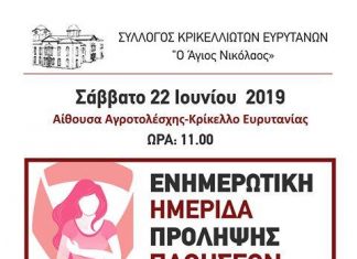 Μια εξαιρετική ιατρική ημερίδα βασισμένη στην πρόληψη γυναικολογικών παθήσεων πραγματοποιήθηκε στο χωριό μας το Σάββατο 22 Ιουνίου 2019 στην Αίθουσα Αγροτολέσχης Κρικέλλου, διοργάνωσε ο...
