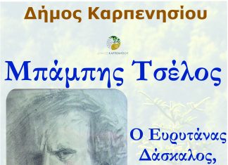 Σάββατο 6/4/2019 στο Καρπενήσι (Συνεδριακό Κέντρο)θα πραγματοποιηθεί Αφιέρωμα. Ο Δήμος Καρπενησίου, με τη συνδρομή του Συνδέσμου Ευρυτάνων Λογοτεχνών και Συγγραφέων, διοργανώνει σε ένα αφιέρωμα...