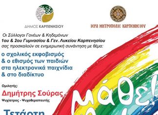 Σήμερα στο Συνεδριακό Καρπενησίου η ενημερωτική ομιλία ‘Μάθε, Μίλα, Ζήσε’