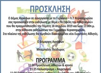 Πέμπτη 18/4/2019 στο Κερασοχώρι (αίθουσα εκδηλώσεων Γυμνασίου) Ο Δήμος Αγράφων σε συνεργασία με το Γυμνάσιο – Λ.Τ. Κερασοχωρίου διοργανώνουν εκδήλωση με θέμα «Τα Οφέλη...