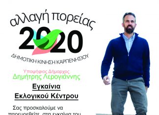 Σάββατο 13/4/2019 στο Καρπενήσι (Κοτσιμπού 4) θα πραγματοποιηθούν Εγκαίνια Εκλογικού Κέντρου. Ο Υποψήφιος Δήμαρχος Καρπενησίου κ. Δημήτριος Λερογιάννης και ο συνδυασμός ‘αλλαγή πορείας...