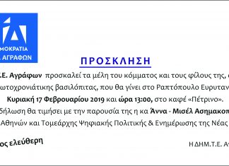 Κυριακή 17/2/2019 Ραπτόπουλο Η ΔΗΜ.Τ.Ε. Αγράφων προσκαλεί τα μέλη του κόμματος...