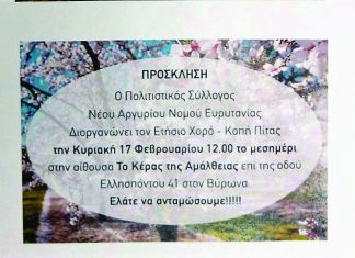 Κοπή πίτας απο τον Πολιτιστικό Σύλλογο Νέου Αργυρίου