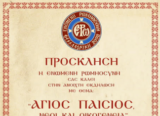 Σάββατο 6/10/2018 Καρπενήσι (Συνεδριακό Κέντρο) Ομιλία. ‘‘Άγιος Παΐσιος, νέοι και οικογένεια’’. Η Ενωμένη Ρωμιοσύνη διοργανώνει ανοιχτή εκδήλωση με ομιλητή τον Σεβασμιότατο Μητροπολίτη Αιτωλίας και...