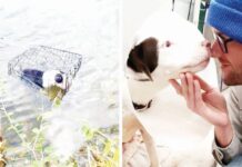 Βούτηξε στο παγωμένο νερό για να σώσει σκυλάκι που ήταν κλειδωμένο σε κλουβί