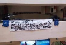 “Εδώ είναι…” Η απάντηση του Μπακογιάννη για το απαράδεκτο πανό αναρχικών