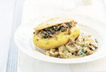 Φωλιές ψητής πατάτας με γέμιση κιμά μπέικον & σάλτσα μανιταριών