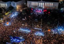 Αντιπολεμικό «ανθρώπινο ποτάμι» στα Προπύλαια σε μια μεγαλειώδη συναυλία