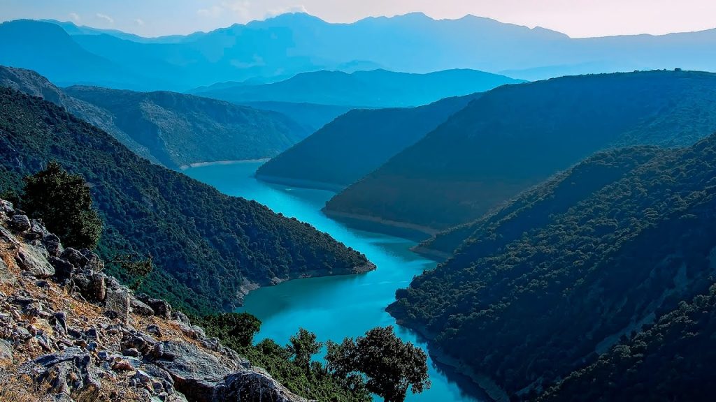 Απόψεις της τεχνητής λίμνης Κρεμαστών που βρίσκεται ανάμεσα στην Αιτωλοακαρνανία και την Ευρυτανία. Δημιουργήθηκε το 1965 με την κατασκευή του φράγματος των Κρεμαστών. Στα πλάνα διακρίνεται και η μεγάλη γέφυρα της Επισκοπής που ενώνει τις όχθες.
