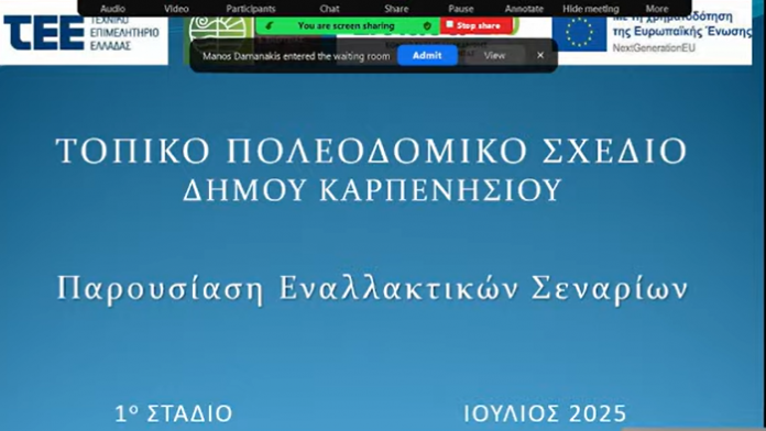 Παρουσιάστηκε χθες 23 Ιουλίου 2025 στο Συνεδριακό Κέντρο Καρπενησίου ο σχεδιασμός για τα Τοπικά Πολεοδομικά Σχέδια του Καρπενησίου, τις μελέτες δηλαδή πολεοδομικού σχεδιασμού πρώτου επιπέδου που ανήκουν στο πρόγραμμα πολεοδομικών μεταρρυθμίσεων ‘Κωνσταντίνος Δοξιάδη’. Στόχο τους είναι η ταχεία και αποτελεσματική ολοκλήρωση του χωροταξικού και πολεοδομικού σχεδιασμού στο σύνολο της χώρας. Η μελέτη έχει ενταχθεί και χρηματοδοτείται από το Ταμείο Ανάκαμψης και όταν ολοκληρωθεί θα παραδώσει ένα σύνολο από κείμενα, χάρτες και διαγράμματα, δηλαδή μια ολοκληρωμένη μελέτη για την οργάνωση του χώρου.