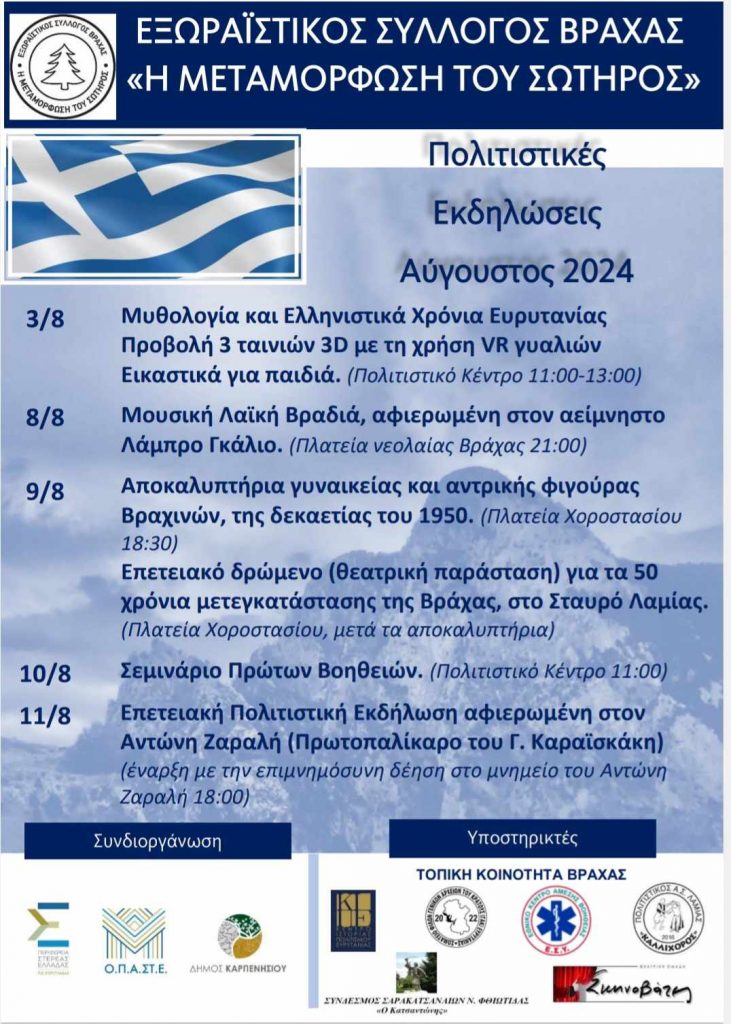 Εκδηλώσεις Πολιτιστικές Εκδηλώσεις Εξωραϊστικού Συλλόγου Βράχας Από Ευρυτανικός Παλμός - 8 Αυγούστου 2024 1475 FacebookTwitterLinkedinWhatsAppTelegramEmailΤυπώνω